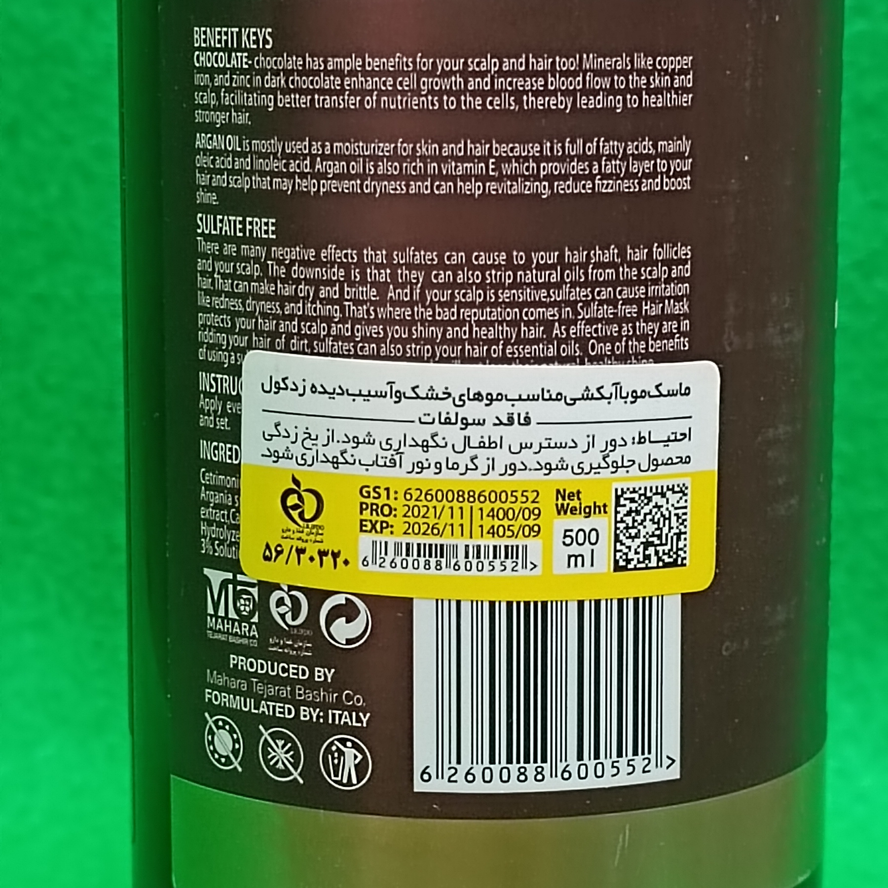 ✓ شکلات موجود در این ماسک مو، موجب داشتن موهایی سالم تر و تقویت شده میشود.